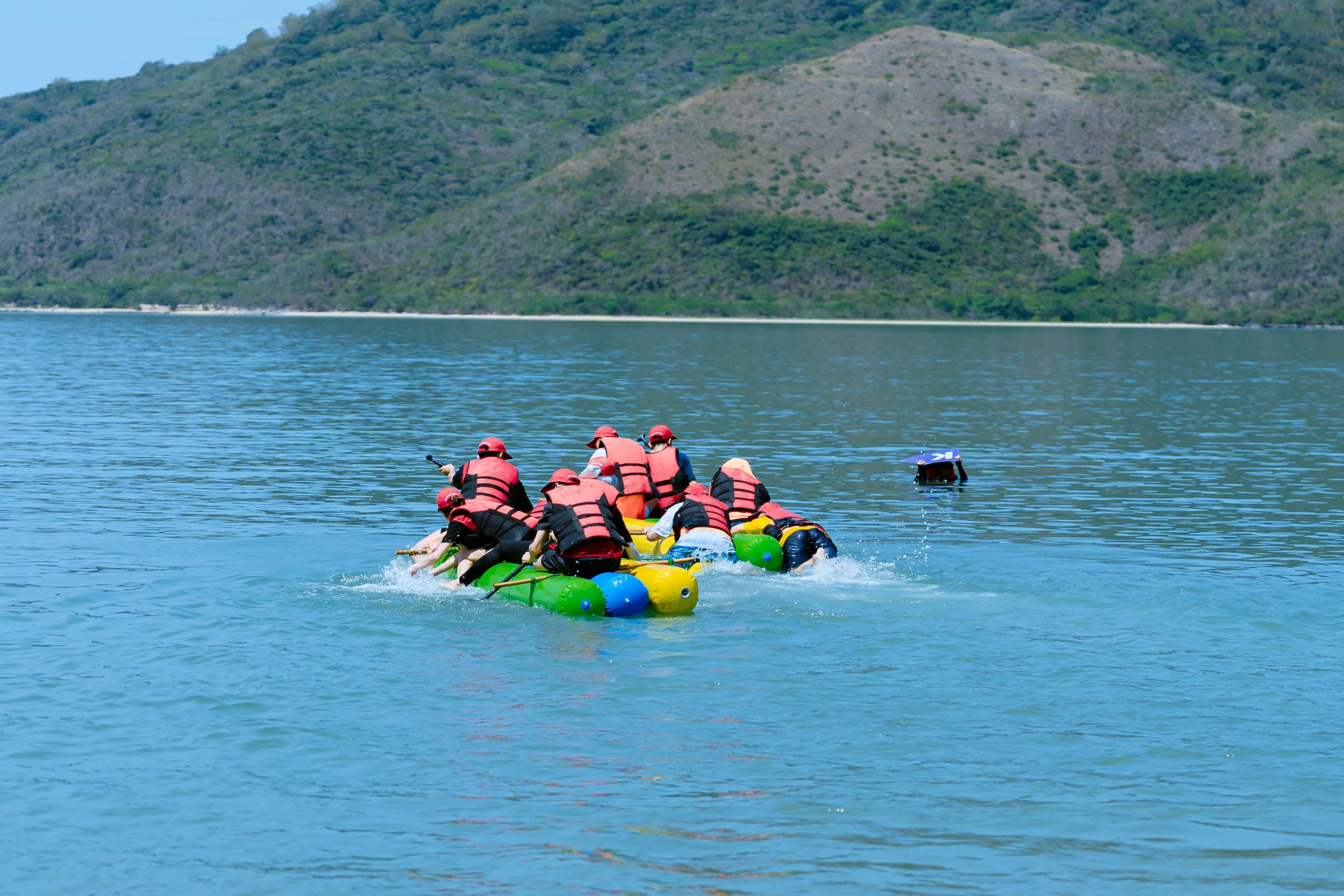 Làng chài Nhơn Hải nổi tiếng với biển xanh và rạn san hô rực rỡ. Một thử thách hấp dẫn là “truy tìm kho báu dưới biển”. Người chơi được trang bị kính lặn, áo phao, cùng nhau tìm những vật dụng được ban tổ chức giấu dưới đáy biển. Đây không chỉ là hoạt động gắn kết, mà còn là cơ hội để mọi người vượt qua nỗi sợ nước, khám phá thế giới đại dương.